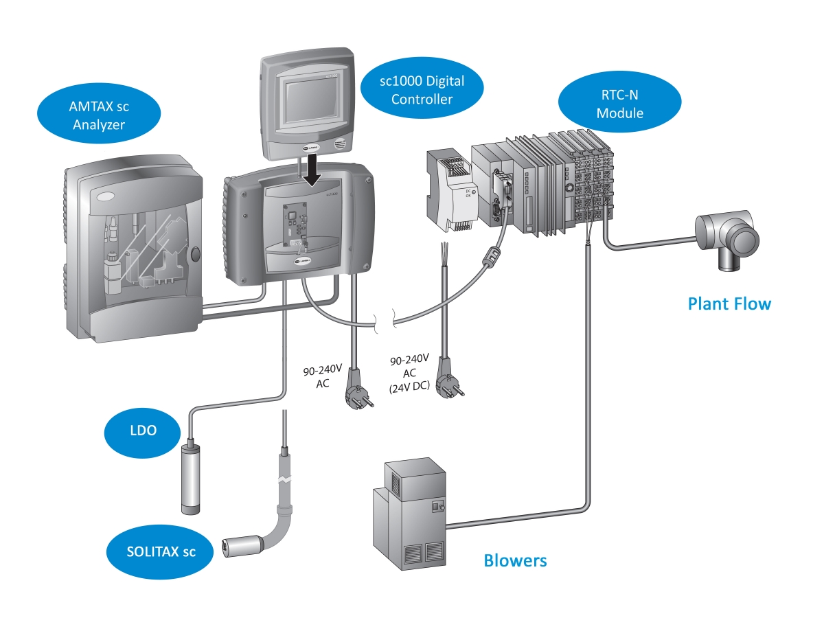 N-RTC硝化模塊包含N-RTC實(shí)時(shí)控制器、氨氮分析儀、污泥濃度計(jì)、溶氧分析儀和 SC1000通用控制器附屬采配水樣單元,以及可選的通訊機(jī)系統(tǒng)集成服務(wù)。