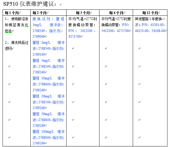 SP510 Maintenance Requirements